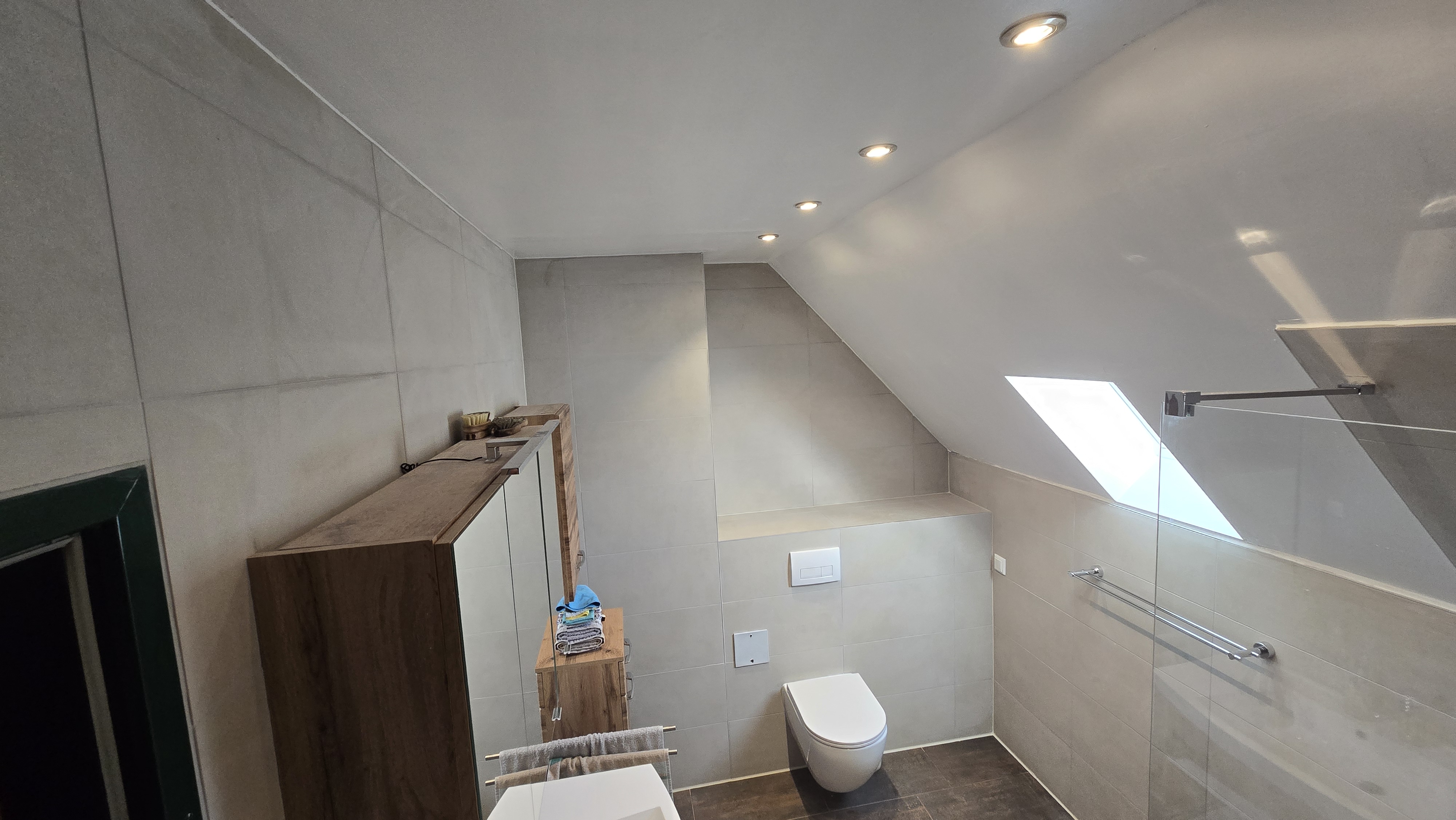 Vollständige Renovierung eines Badezimmers inkl. Fliesenarbeiten, neuer Sanitärobjekte und moderner Armaturen.